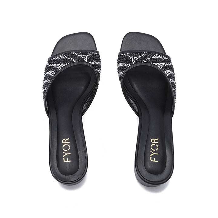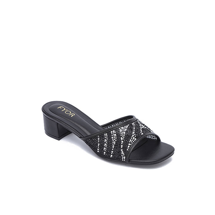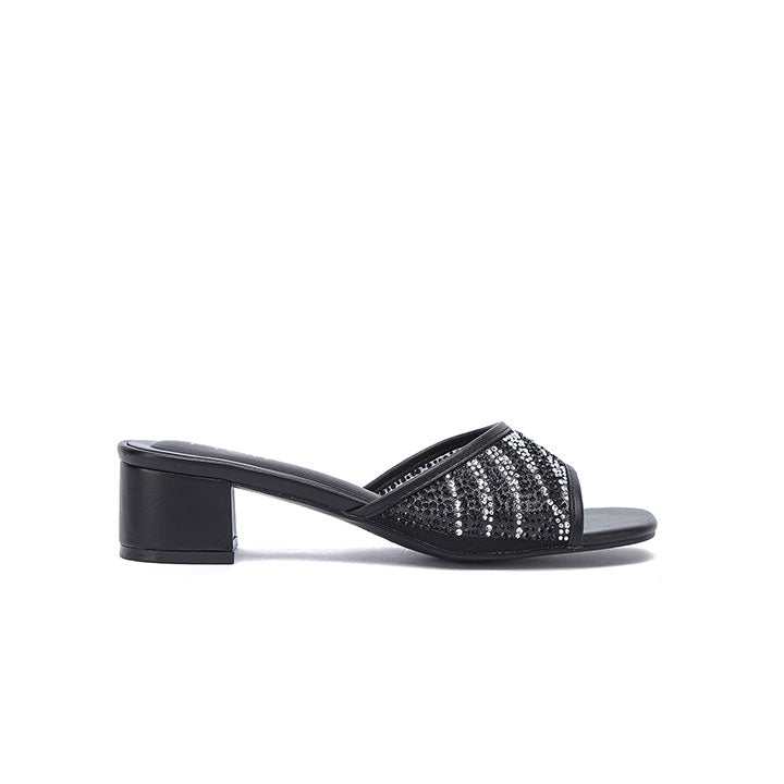 Crystal Adorned Square Toe Design Block Slides BB 82