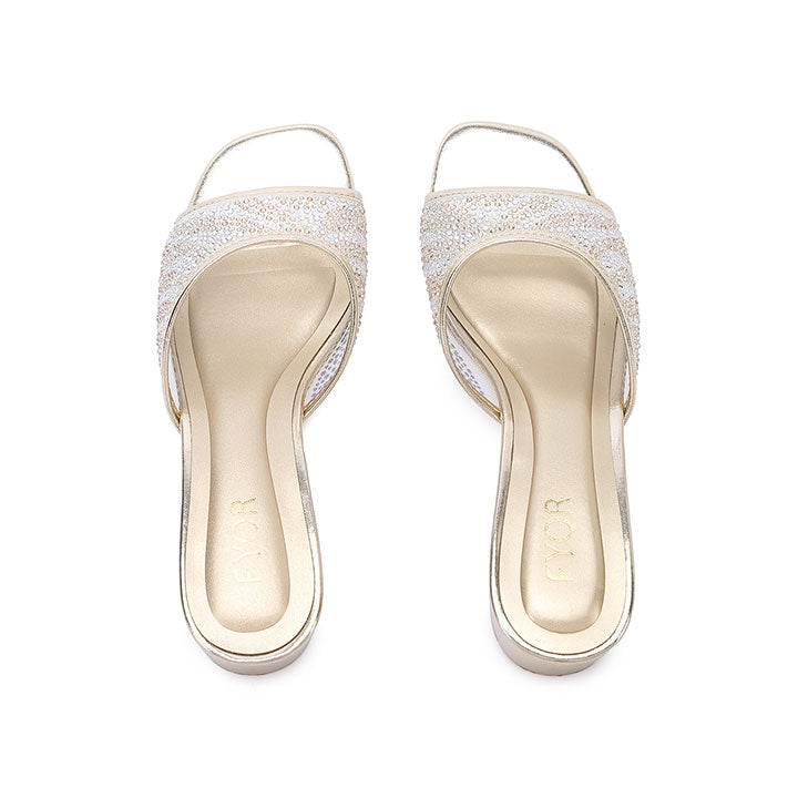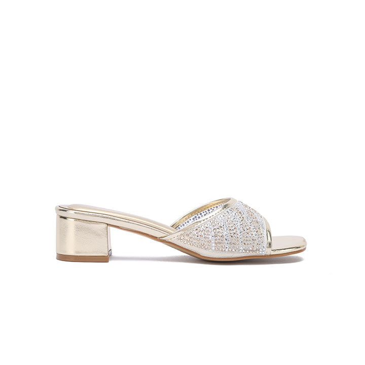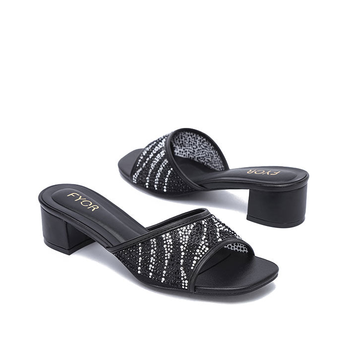 USP: Chic box heel elevation, dense mixed-rhinestone pattern, wide secure vamp, comfortable stability, and effortless slide-on statement glamour.