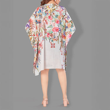 Woven Short Kaftan with Belt of Polyester Crape with Crystals MIF001