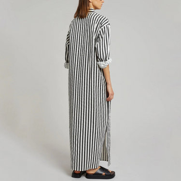 Elevate your wardrobe with our Vertical Striped Long Shirt with Slit Cut. Crafted with a sleek and sophisticated design, this shirt features a stunning vertical striped pattern and a modern slit cut for added flair. Perfect for any occasion, it will effortlessly take you from day to night in style.