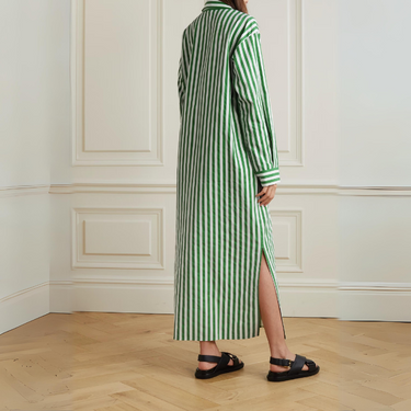 Vertical Striped Long Shirt With Slit Cut J5887