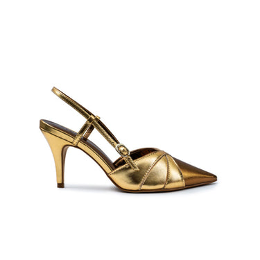 - Luxurious bedazzled Pumps crafted from shiny metallic uppers