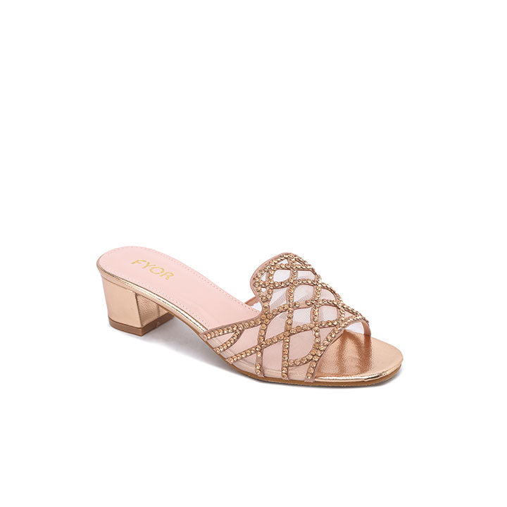 Stylish Crystal-Lattice Mesh Block Heel MY 396