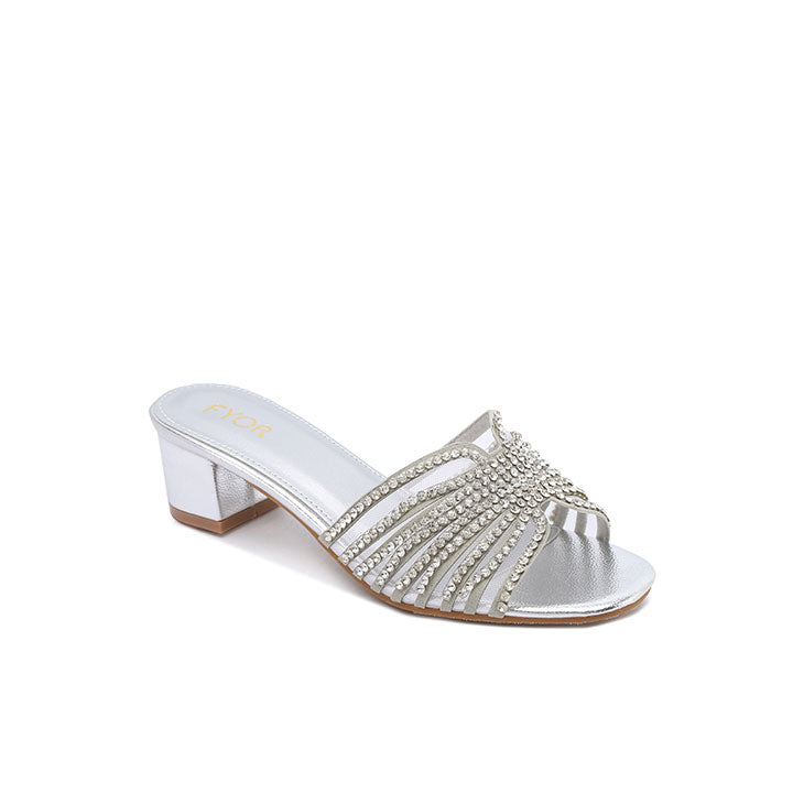 USP: Chic box heel elevation, distinctive sheer mesh and cinched strap, multi-row rhinestone sparkle, comfortable block heel stability, and effortless slip-on style for sophisticated glamour.