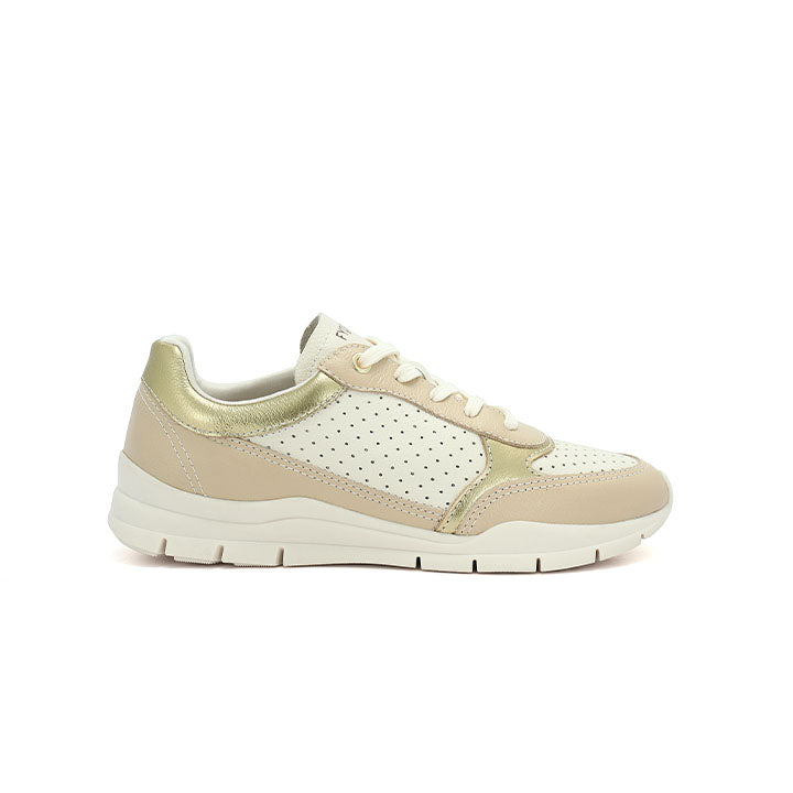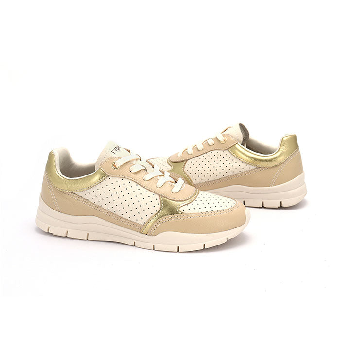 A stylish and ultra-comfortable sneaker crafted with premium materials and breathable perforated panels for enhanced airflow. Featuring a lightweight cushioned sole and ergonomic design, it ensures superior comfort and support for all-day wear. The gold-tone accents add a touch of elegance, making it perfect for both casual and sporty looks.