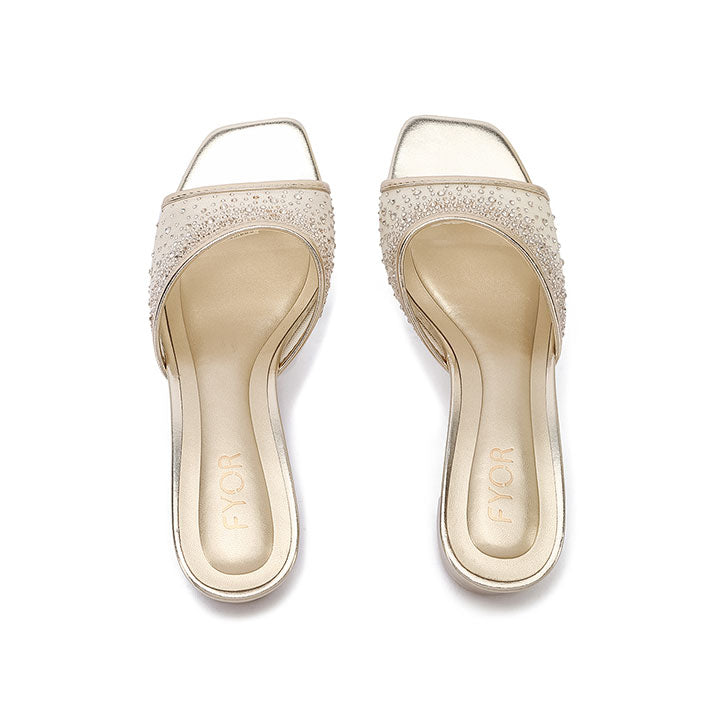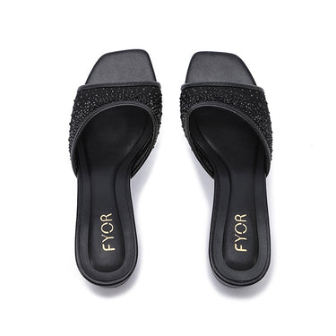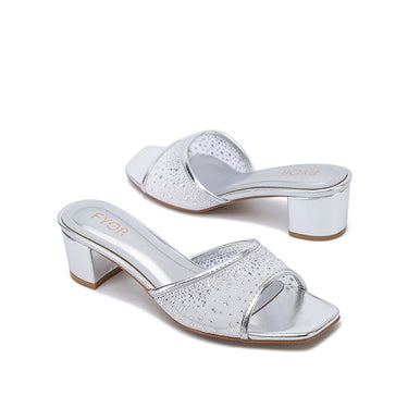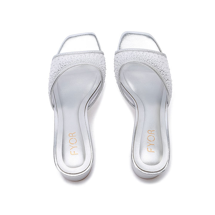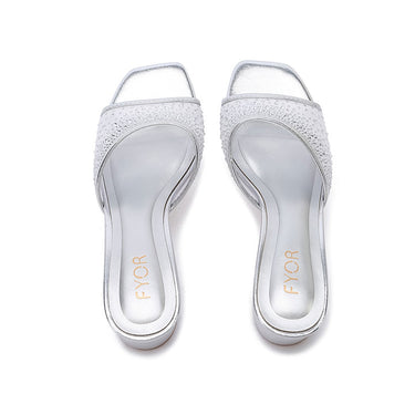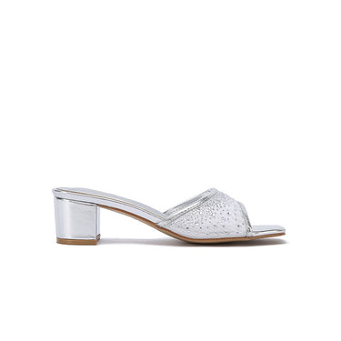 A contemporary take on evening elegance, this mule features a modern square Toe Design and a shimmering mesh front strap encrusted with brilliant diamanté crystals. Making it the ideal choice for weddings and festive celebrations.