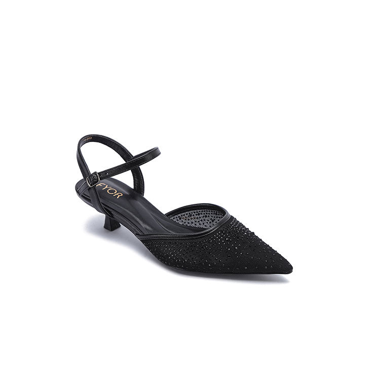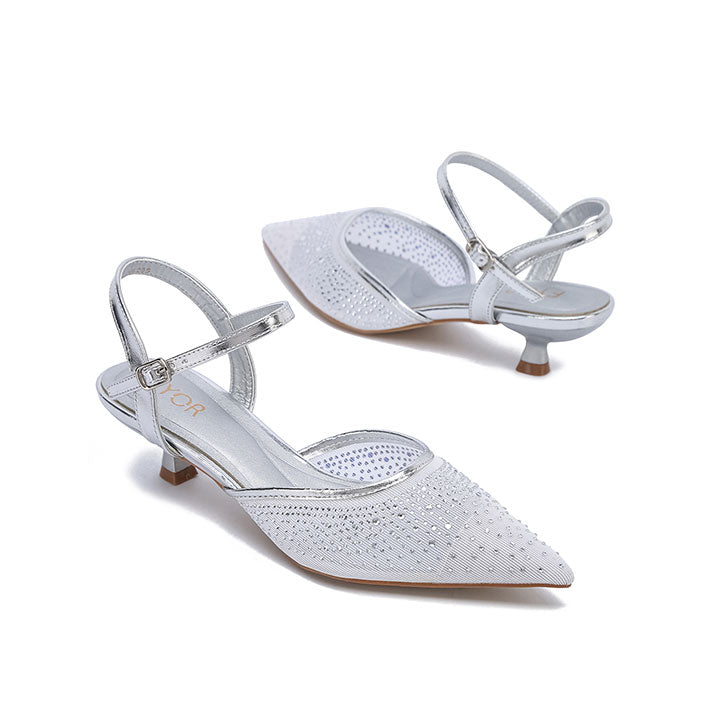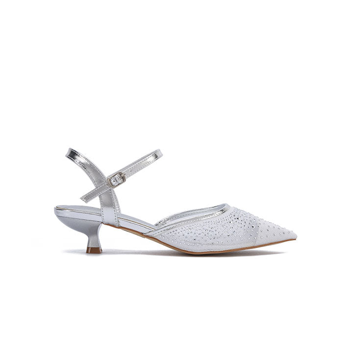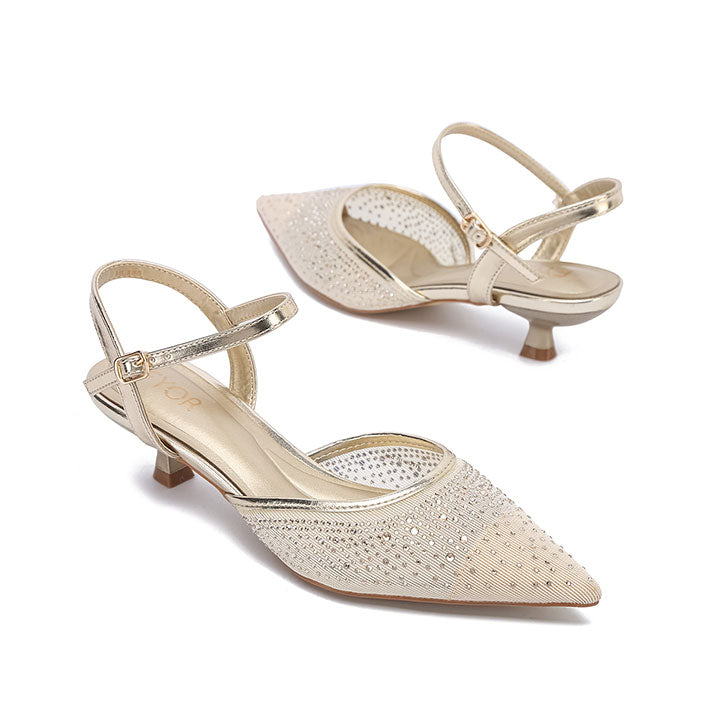 Pointed-Toe Design Embellished Mesh Kitten Heels HL 295