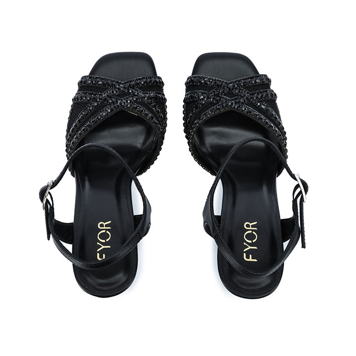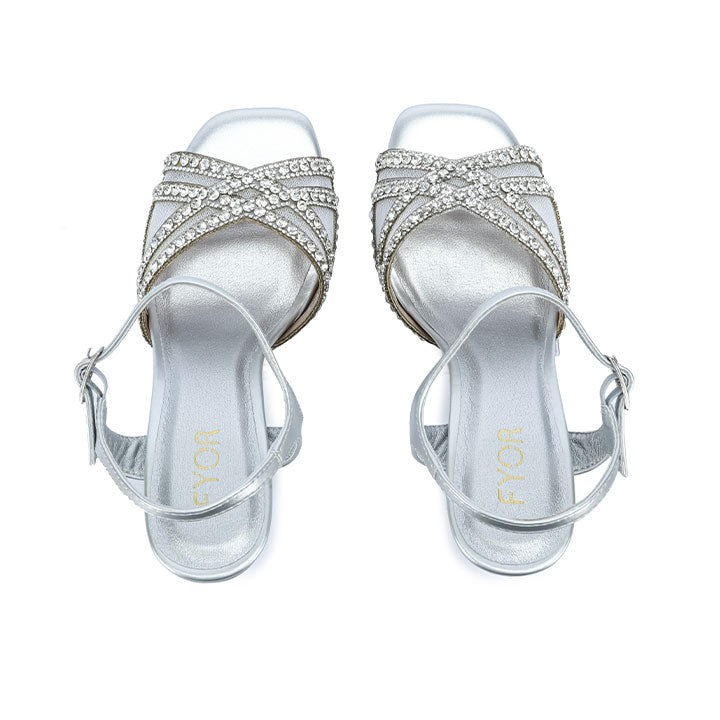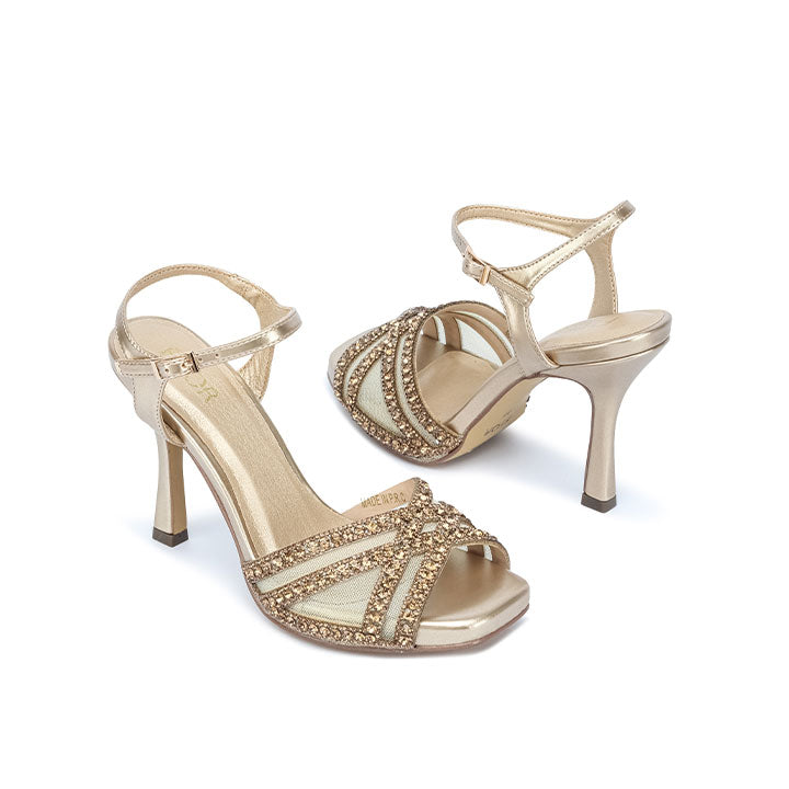 An elegant women’s open-toe ankle-strap sandal featuring a slim high heel and a glamorous crystal-embellished front. The design combines a sleek silhouette with sparkling details, making it ideal for evening wear, parties, weddings, and formal occasions.