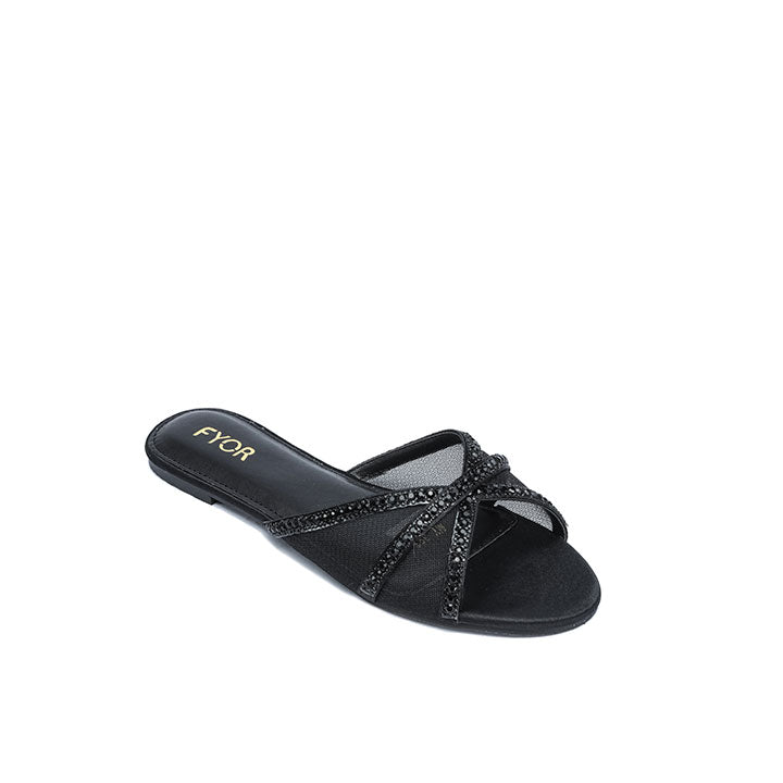 Stylish Thin-Strap Crystal Flat Slide MY 393
