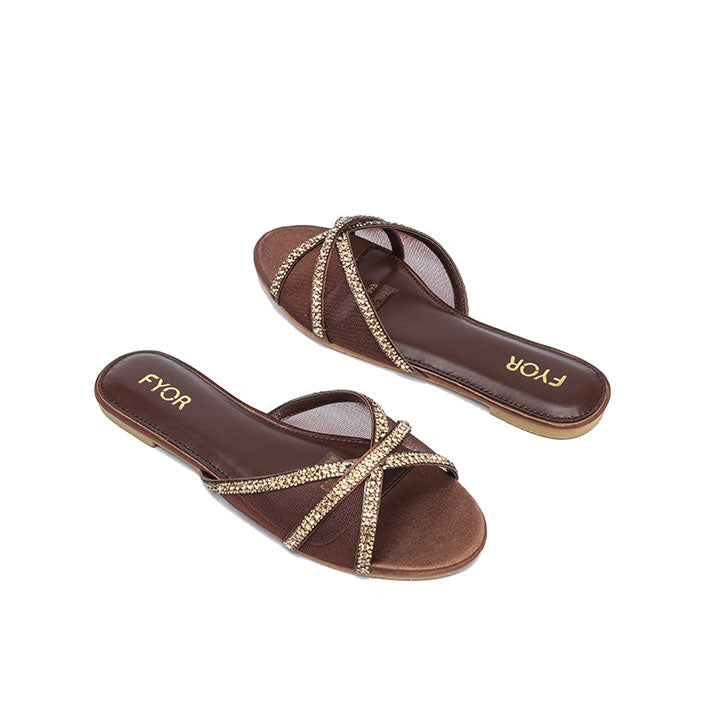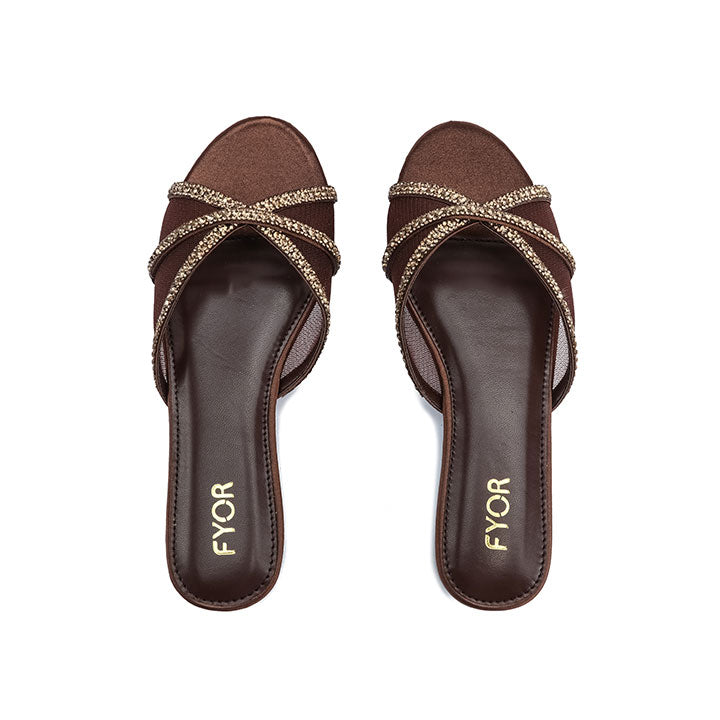 USP: Elegant crisscross design, soft-touch fabric construction, subtle single-row rhinestone accent, comfortable low-profile sole, and effortless slip-on style for sophisticated everyday wear.